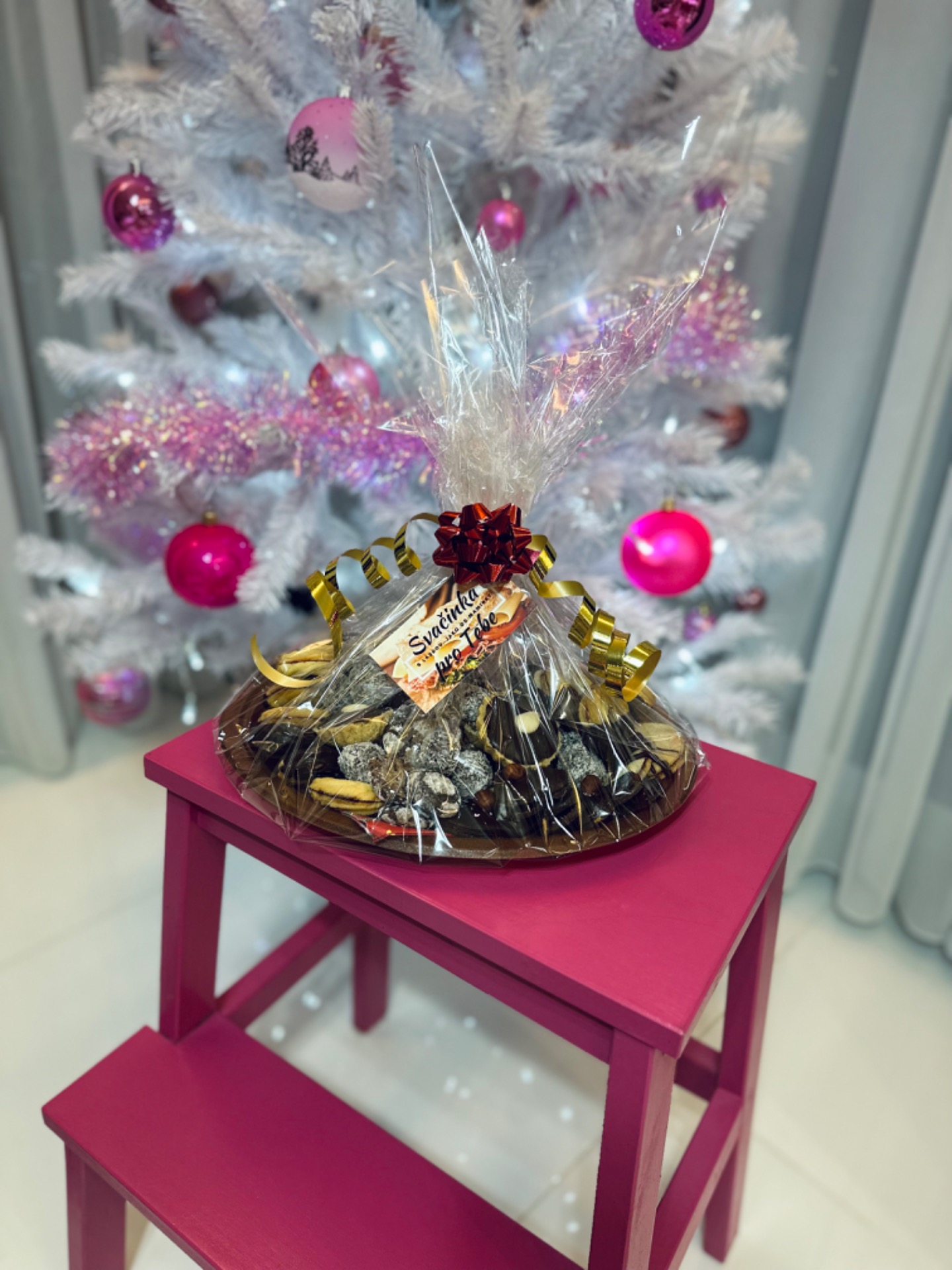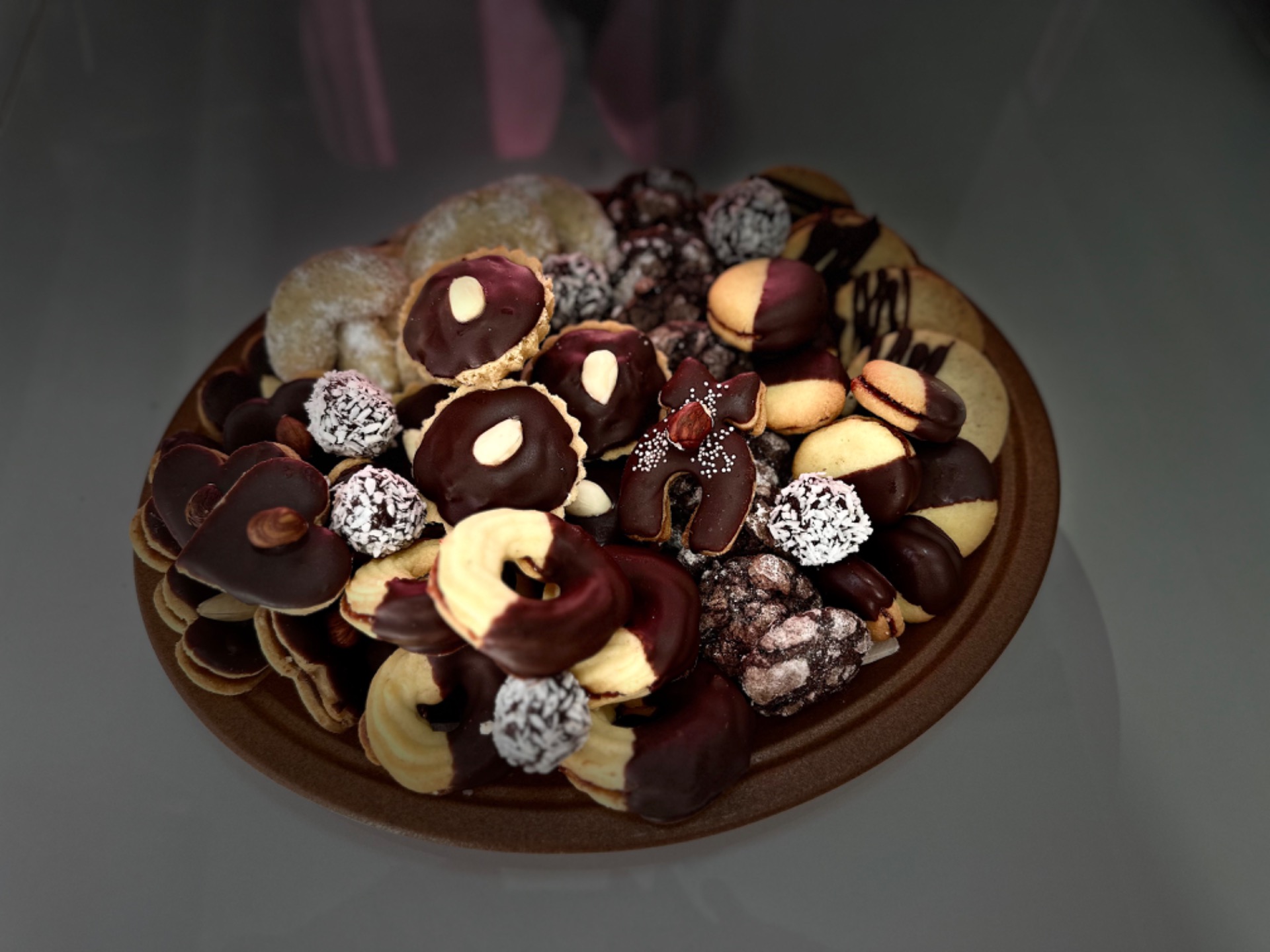 Vše pouze z kvalitních surovin, másla, oříšků a vysokoprocentní čokolády. Balíček je také ideální jako milý dárek nebo pro Vás připravíme extra firemní baličky pro Vaše klienty. Na ilustračním foto je obsah 1 kg. Objednávky bude možné vyzvedávat po domluvě do 22.12.2025.